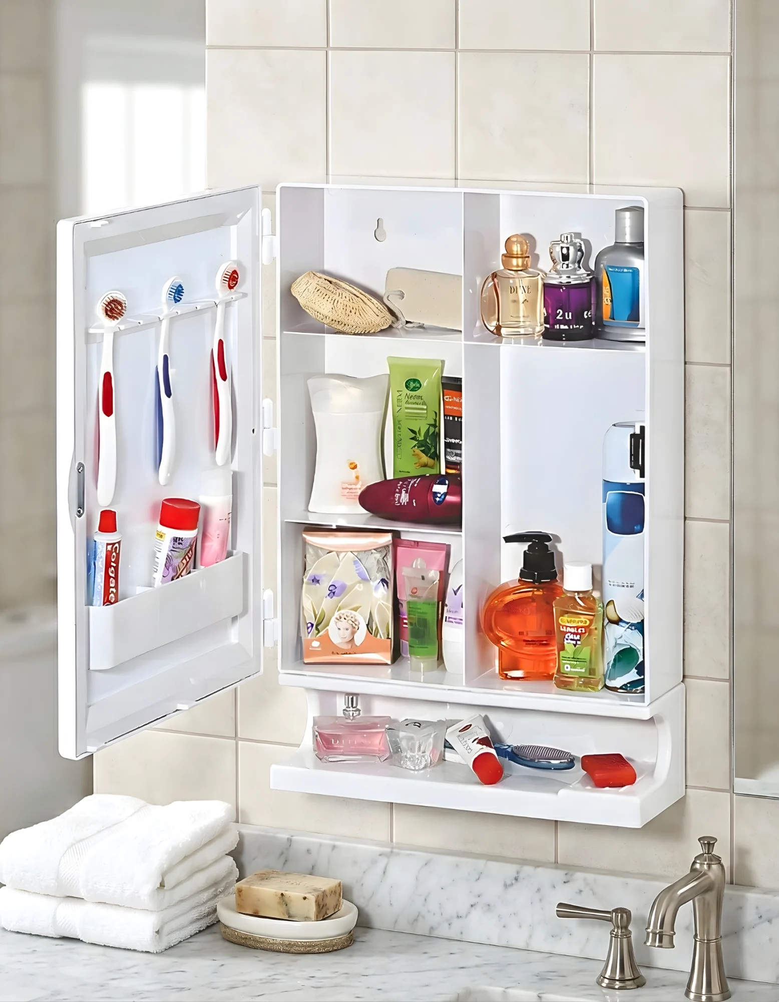 Mirror Cabinet Key Highlights Dual Function Design Works as both a mirror and a storage cabinet A space saving solution Utilizes wall space efficiently without occupying extra room Hidden Storage Space Keeps toiletries, cosmetics, and medicines neatly organized inside Moisture Resistant Suitable for humid bathroom environments Diverse Areas of Applications Home Office or Studio Bedroom & Dressing Area Bathrooms Entryway & Mudroom Buy Now