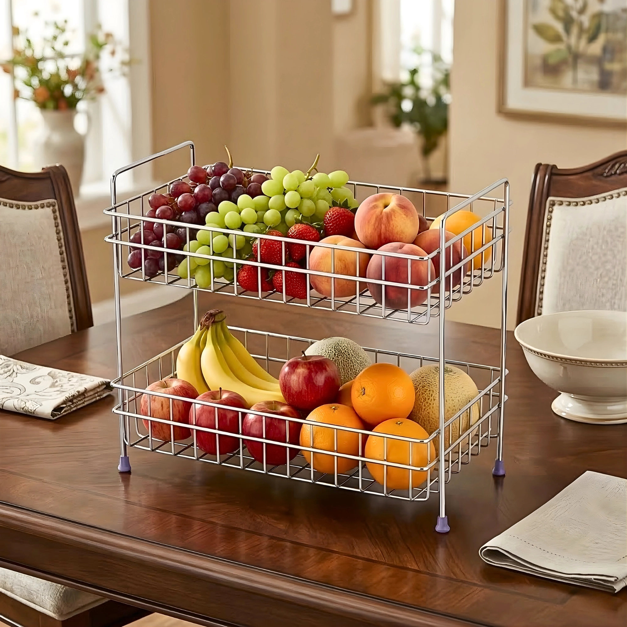 | Enhanced Airflow | The open-mesh wire design ensures optimal ventilation, keeping fruits and vegetables fresh for longer periods. |