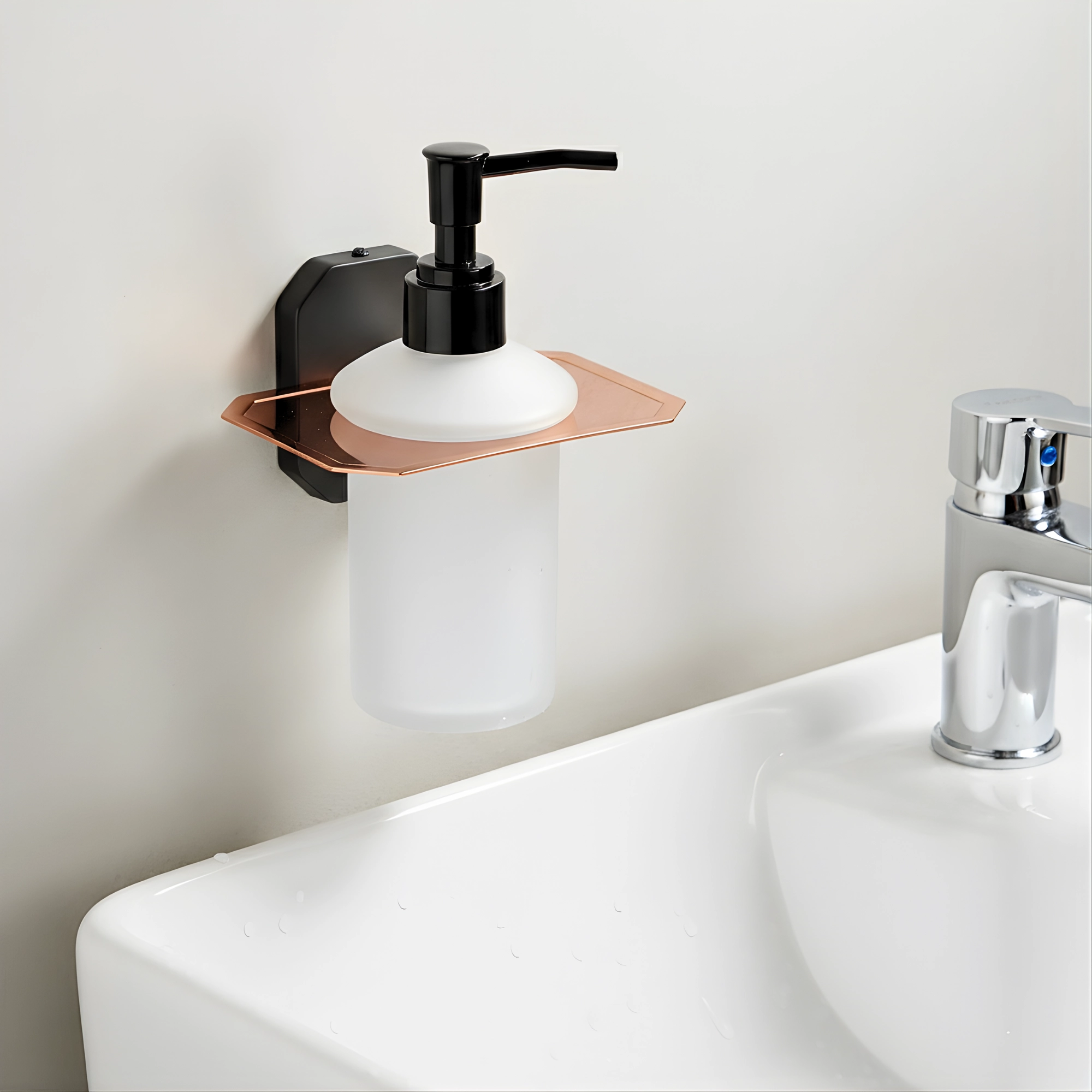 Add a touch of luxury to your space with this elegant soap dispenser, crafted from high-quality transparent glass and finished with rose gold stainless steel. Designed for both style and durability, it enhances your wash area while ensuring smooth and hygienic dispensing.